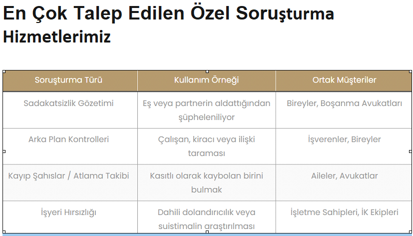 Kapsamlı Özel Soruşturma Hizmetleri
